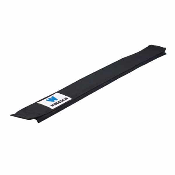 Extra wide padded Laser® hiking strap. For comfortable hiking. Black webbing, 75 mm wide, partly covered with black wear resistant cloth filled with close-cell foam plate material. Does not absorb water. Loop on the aft and open on the front. Width: 10 cm, length: 76 cm.