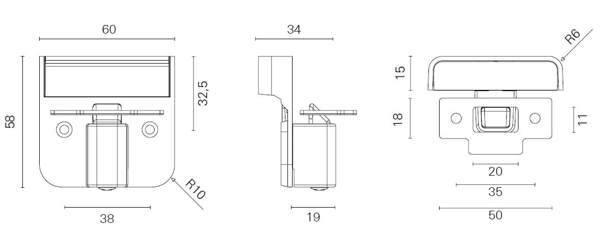 LOCK PUSH-BUTTON VERTICAL BCP 58X60X15MM
