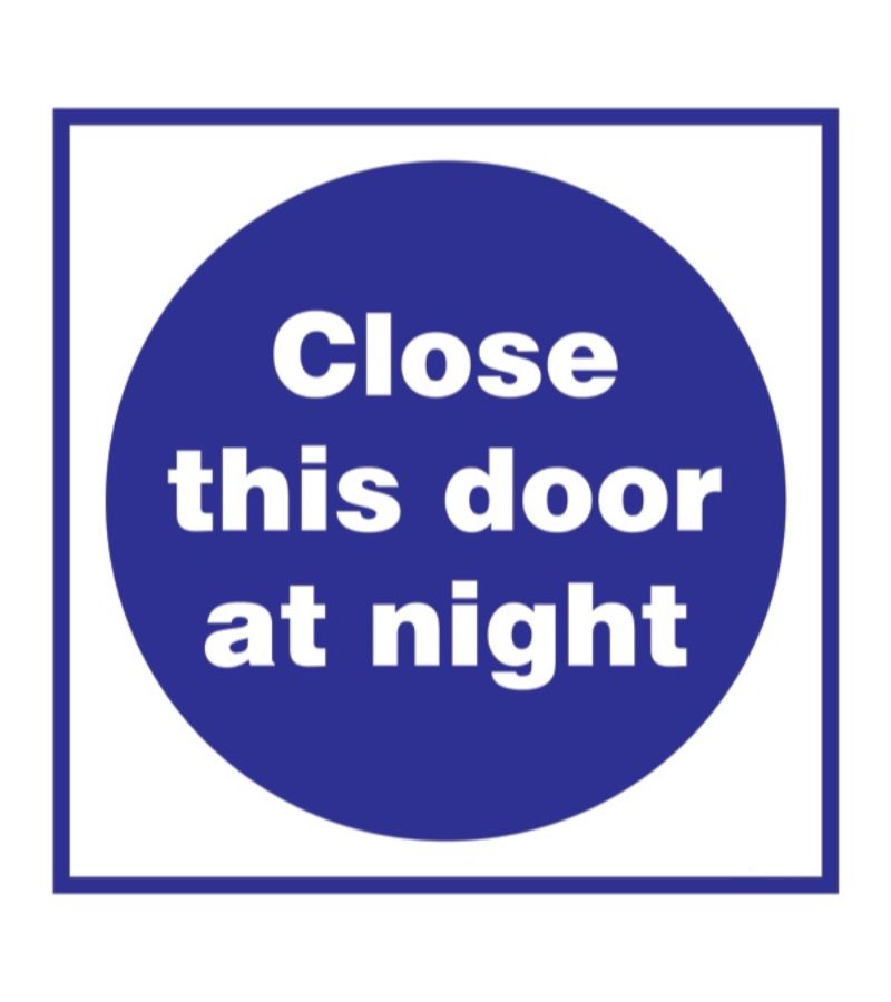 SIGN FS CLOSE THIS DOOR AT NIGHT 15X15CM