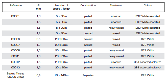 TWINE WHIP 1.5MM WAXED WHITE PER MT quantity
